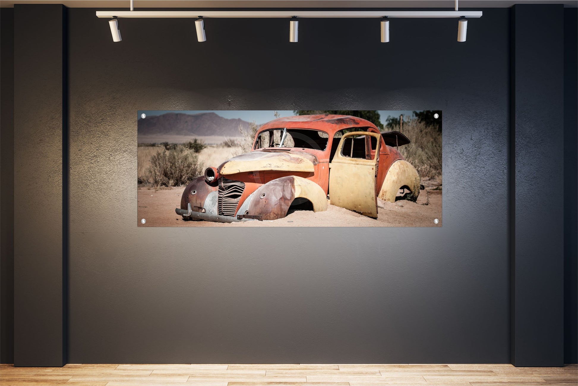 AUTO WANDBILDER POSTER DEKO BILDER XXL 160x60 US OLTIMER AUTOWRACK WÜSTE