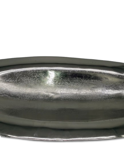 COLMORE DEKO SCHALE XL DESIGN LANG OVAL L 85 cm TISCHDEKO ALU RAW SILBER MODERN