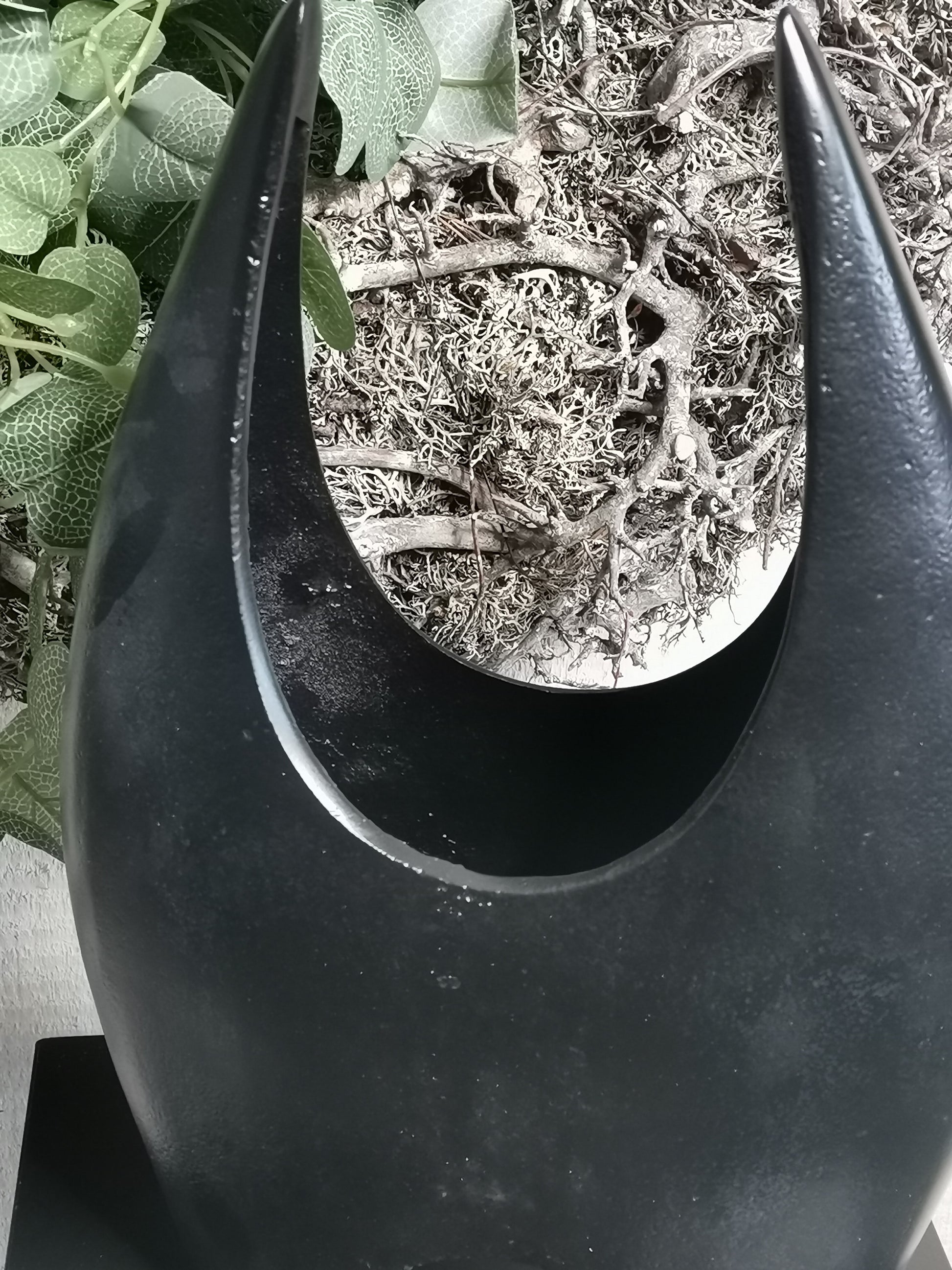 Aus dem Hause Colmore kommt diese ausgefallene Vase, aus der Alu Black Matt Serie. Tolles Design in Form und Farbe, lassen diese Vase mit einer Höhe von 26 cm und einer Stellfläche von 22x13 cm, in jedem Wohnbereich Edel und Extravagant erscheinen. Auch ohne Dekoration ist die Vase ein zeitlos schönes Wohnaccessoire. Das Material ist nur für Deko Zwecke geeignet.