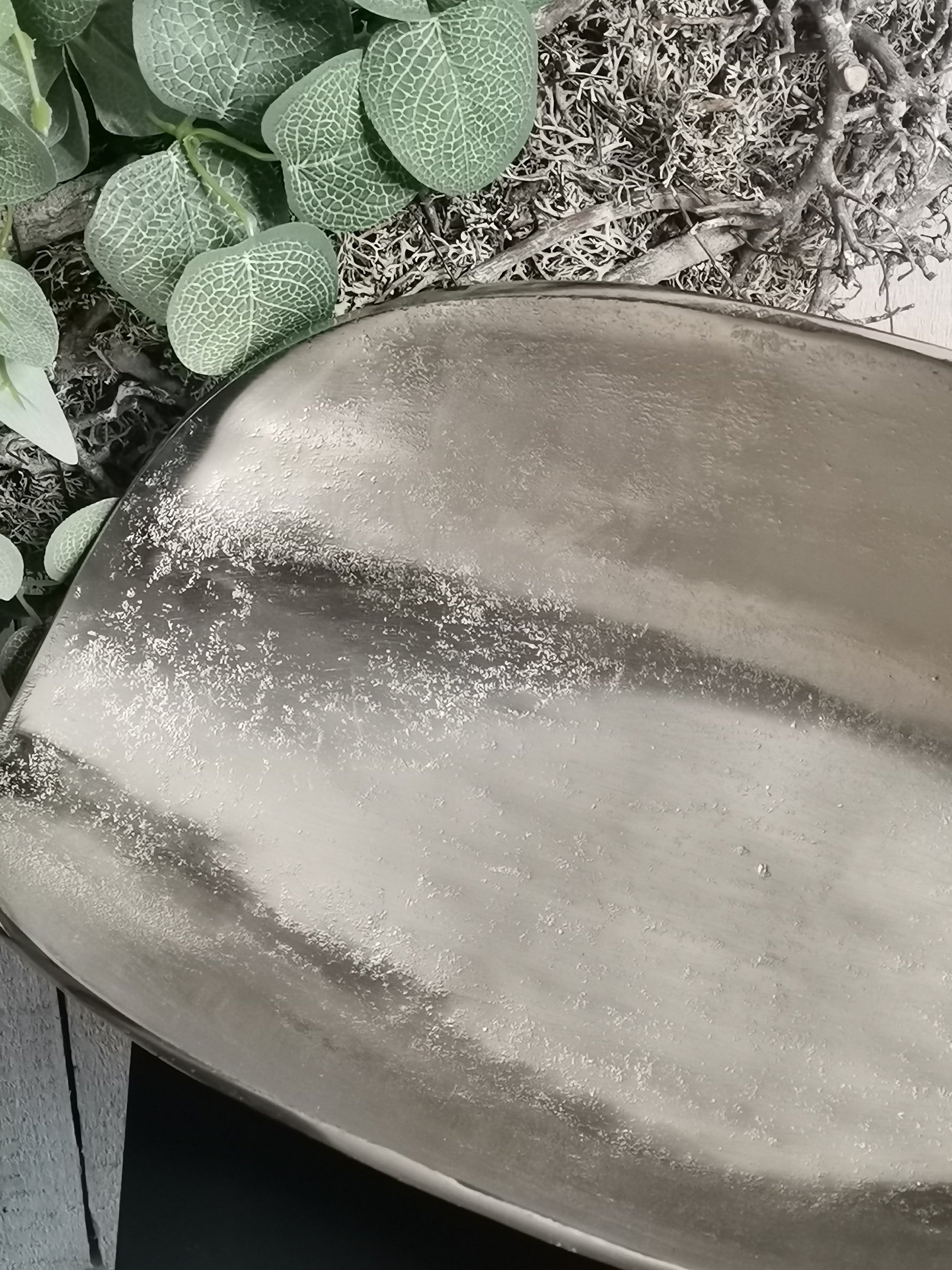 COLMORE Deko Schale Gebogen 41x23x12 cm Alu Silber RAW Deko Teller Modern
