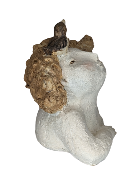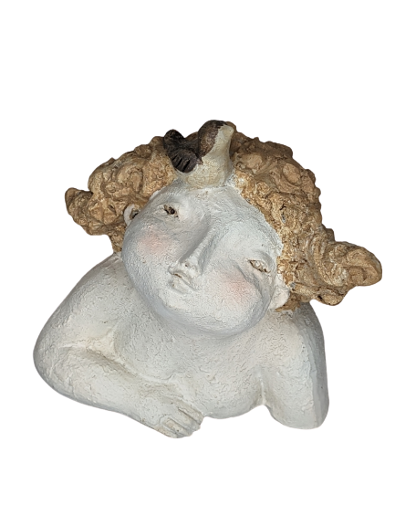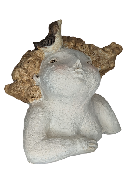 Die EXNER Skulptur aus der Serie CrivA "Lady CrivA Büste mit Vogel" präsentiert eine faszinierende Kunstfigur aus hochwertigem Polyresin. Mit den Abmessungen von 13,5x11,5x15,5 cm zeigt diese Skulptur eine nachdenkliche Dame mit einer beeindruckenden Lockenpracht, auf deren Kopf ein zauberhafter Vogel thront.