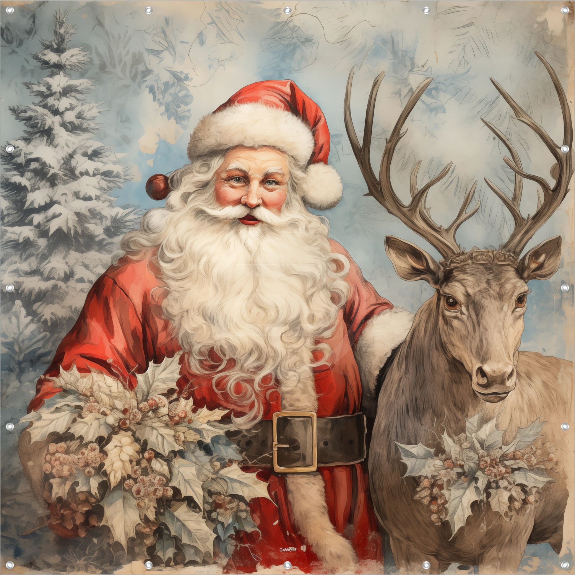 Outdoor Bild Banner Außen Gartenposter wetterfest 180x180 Weihnachtsmann Vintage 7