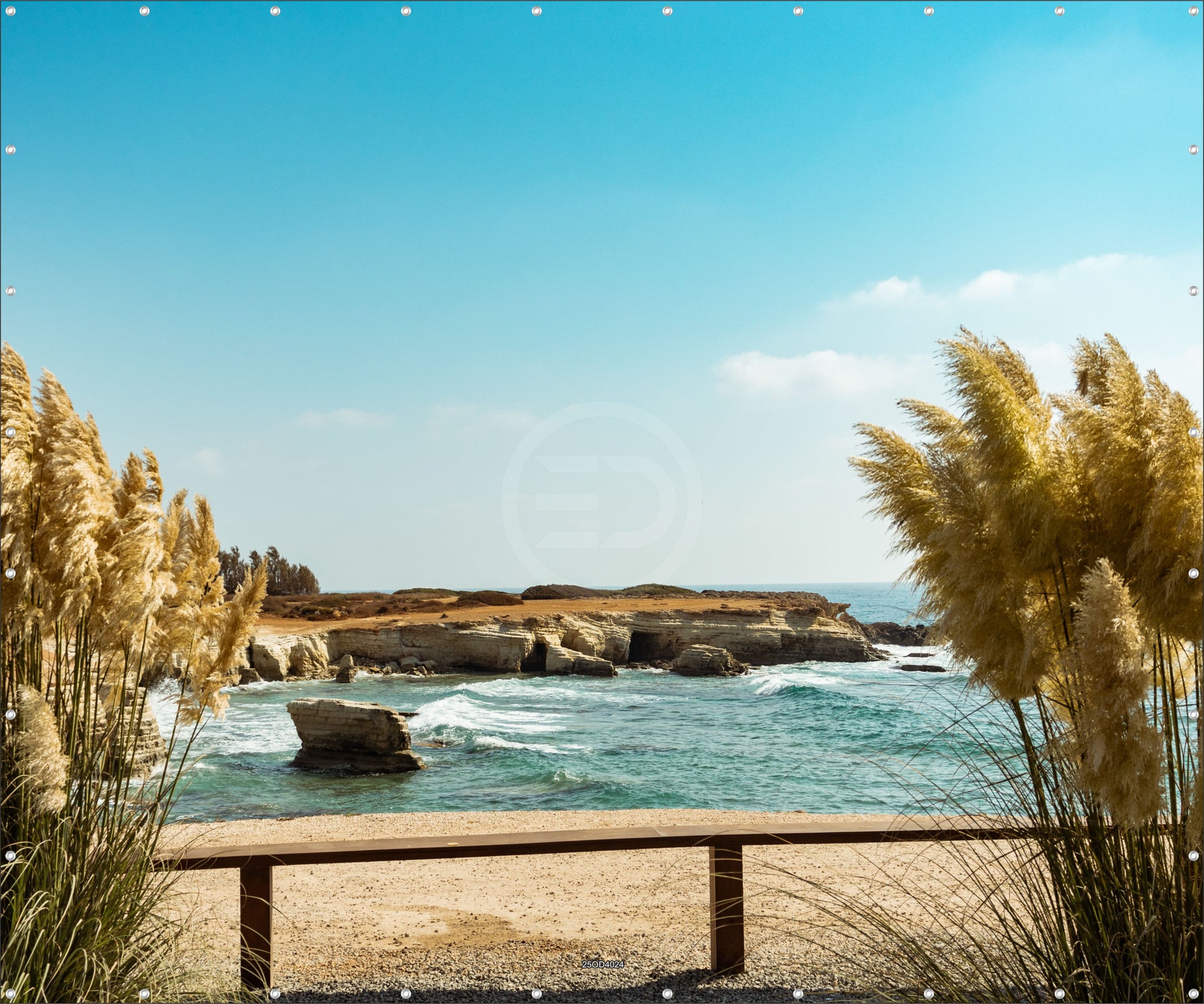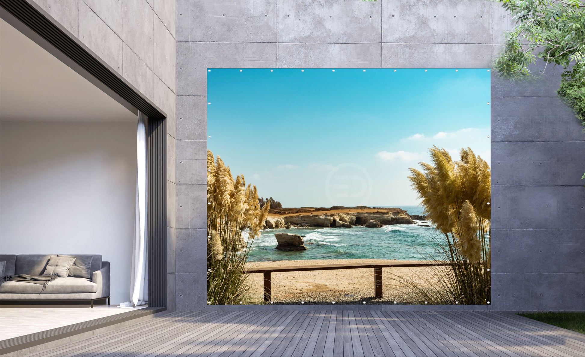 Outdoor Bild Banner Außen Gartenposter wetterfest XXL 300x250 Küste Meer Felsen