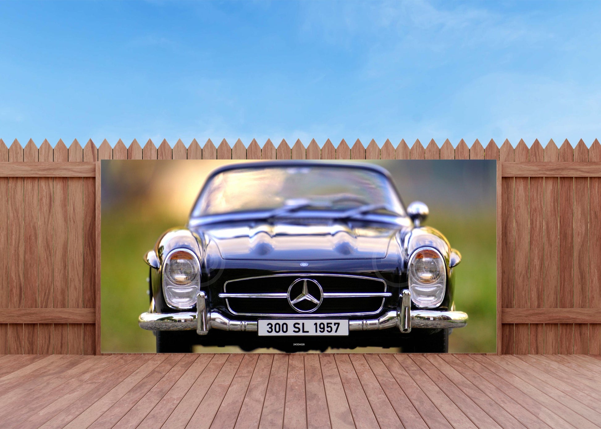 OUTDOOR BILD BANNER GARTENPOSTER WETTERFEST 370x180 AUTO MERCEDES SL OLDTIMER