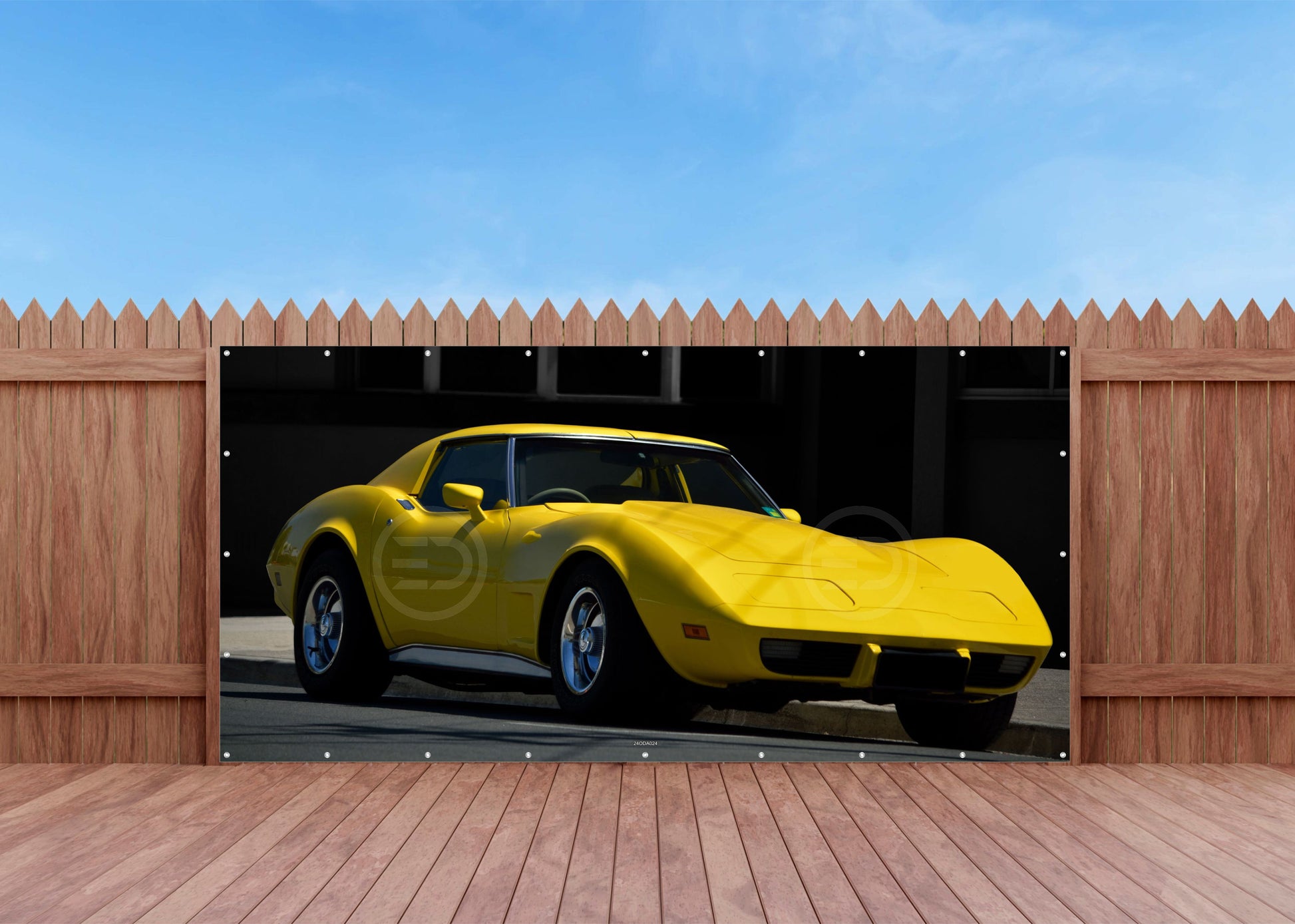 OUTDOOR BILD BANNER GARTENPOSTER WETTERFEST 370x180 AUTO OLDTIMER CORVETTE