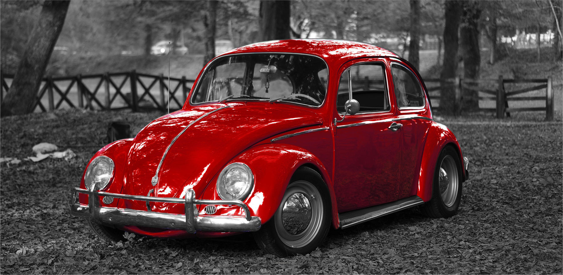 OUTDOOR BILD BANNER GARTENPOSTER WETTERFEST 370x180 AUTO OLDTIMER KÄFER ROT