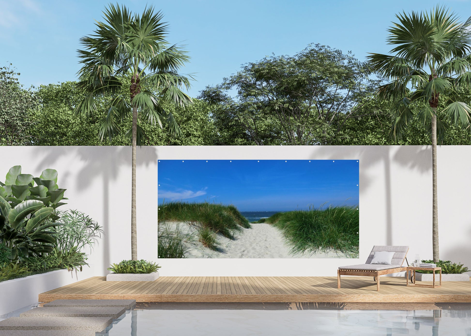 Outdoor Bild Banner Außen Gartenposter wetterfest 370x180 Meer Gras Strand