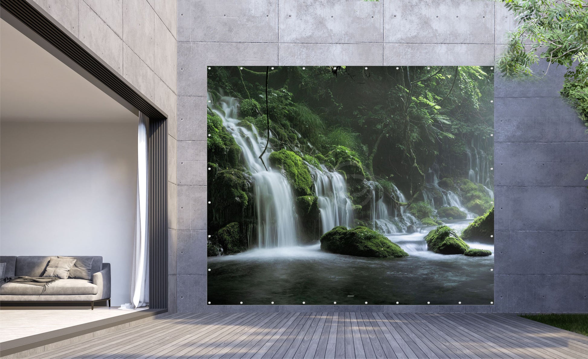 Outdoor Bild Banner Gartenposter Außen wetterfest XXL 300x250 Wasserfall Wald Natur