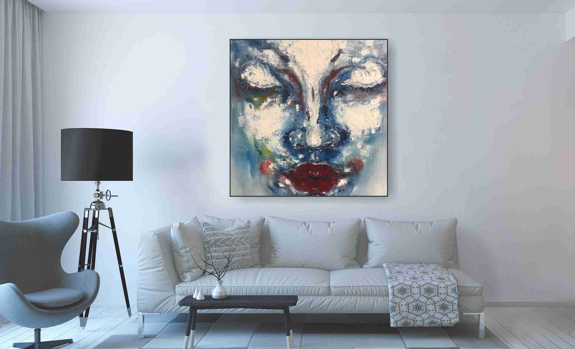 WANDBILD ALURAHMEN XXL ABSTRAKTE BILDER WOHNZIMMER 120x120 FRAU GESICHT