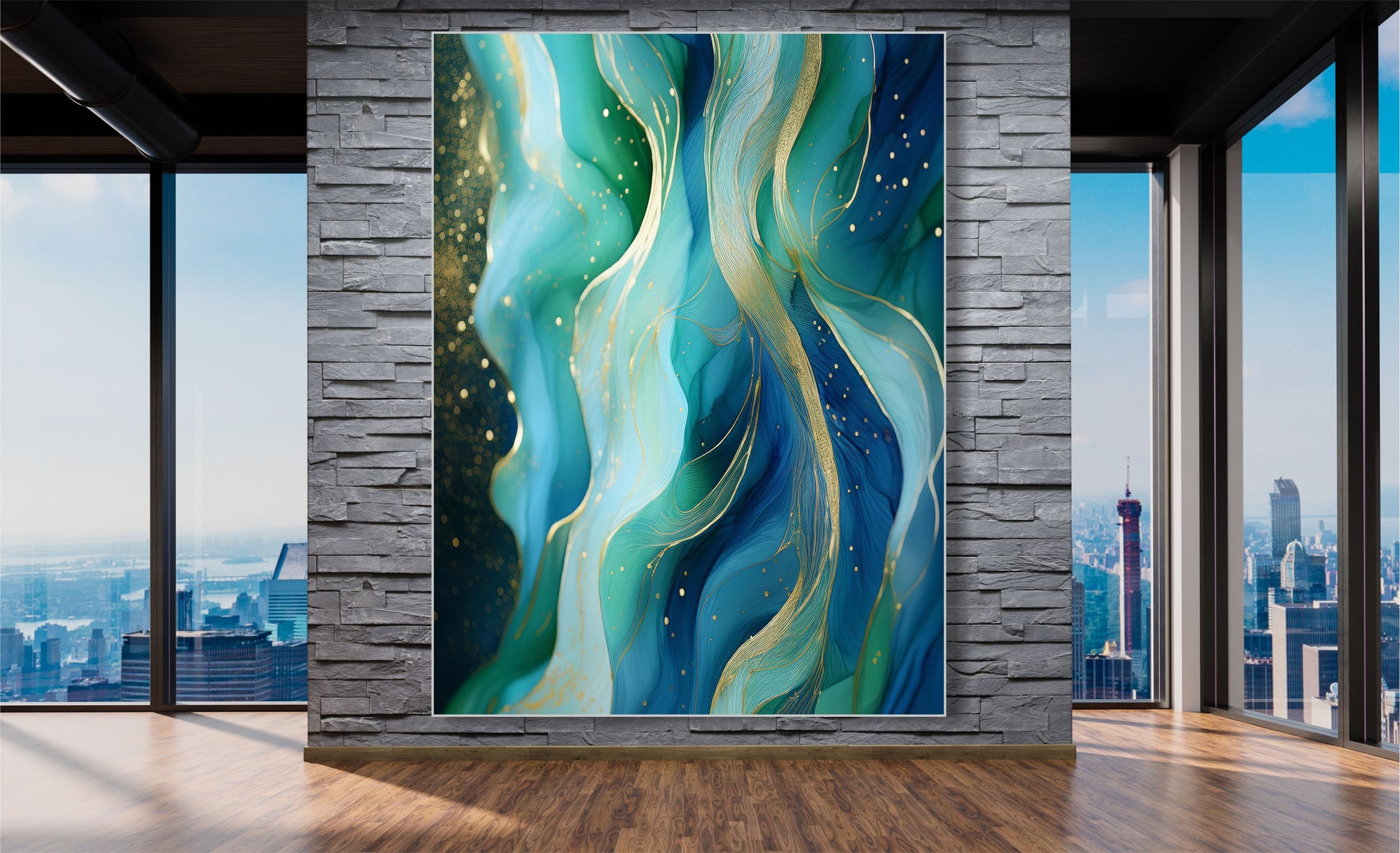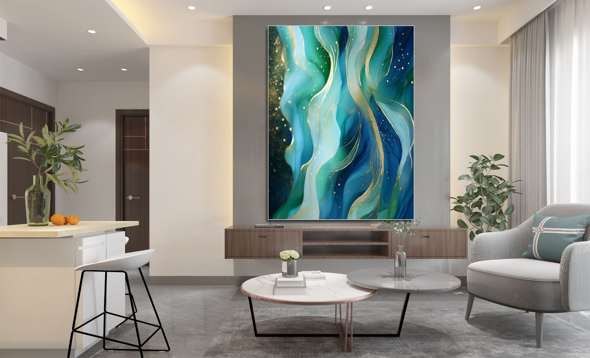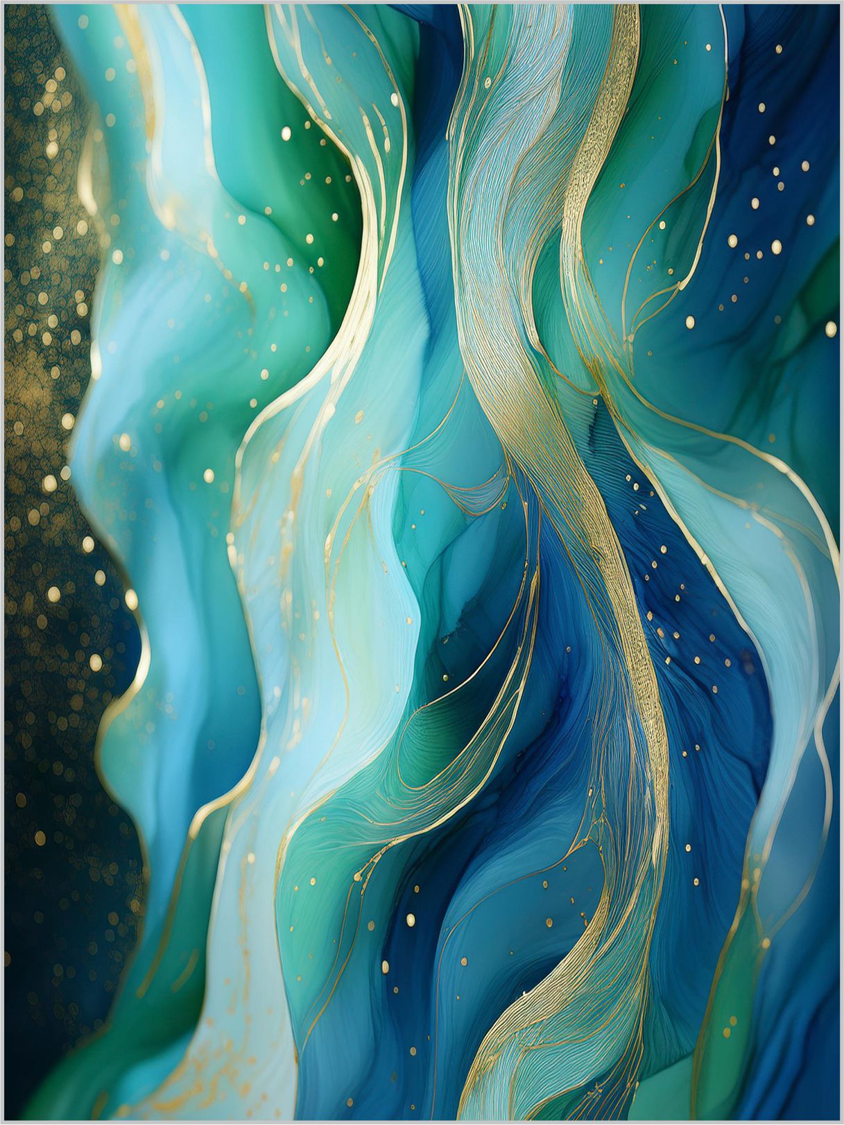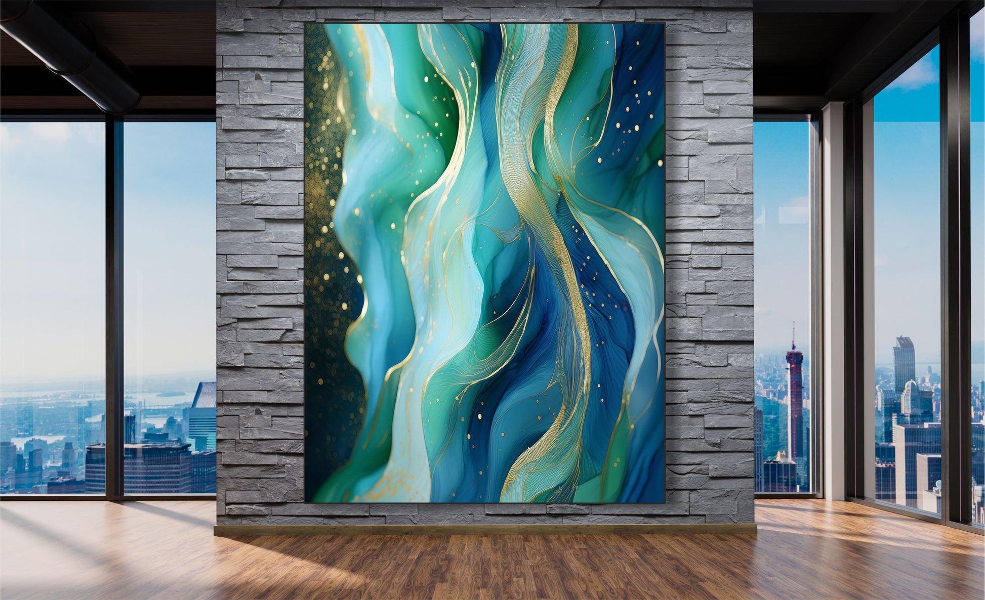 WANDBILD ALURAHMEN 150x200 ABSTRAKT BILDER XXL WOHNZIMMER KUNST BLAU GOLD