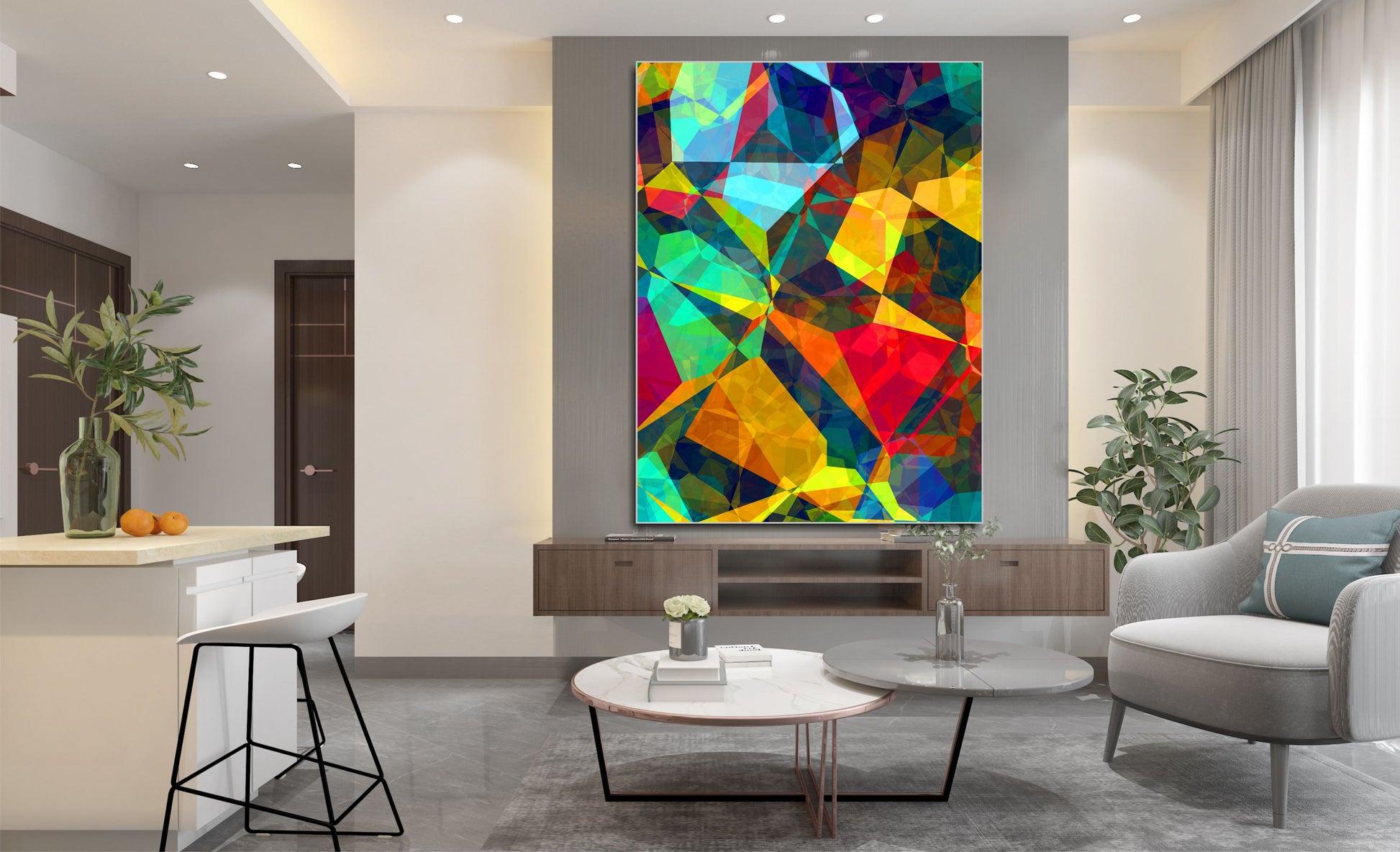 WANDBILD ALURAHMEN MODERN 150x200 ABSTRAKTE BILDER WOHNZIMMER MOSAIK BUNT
