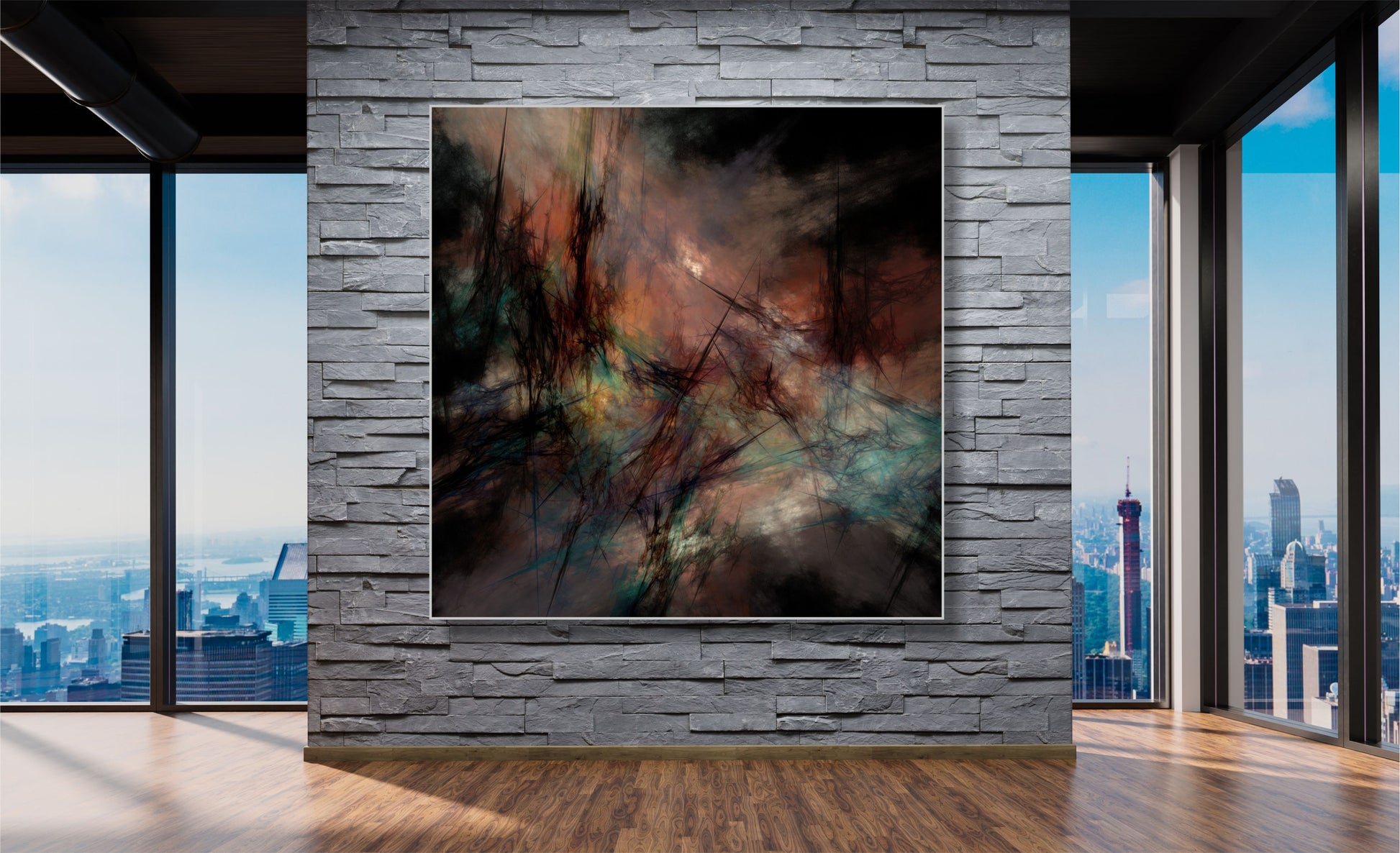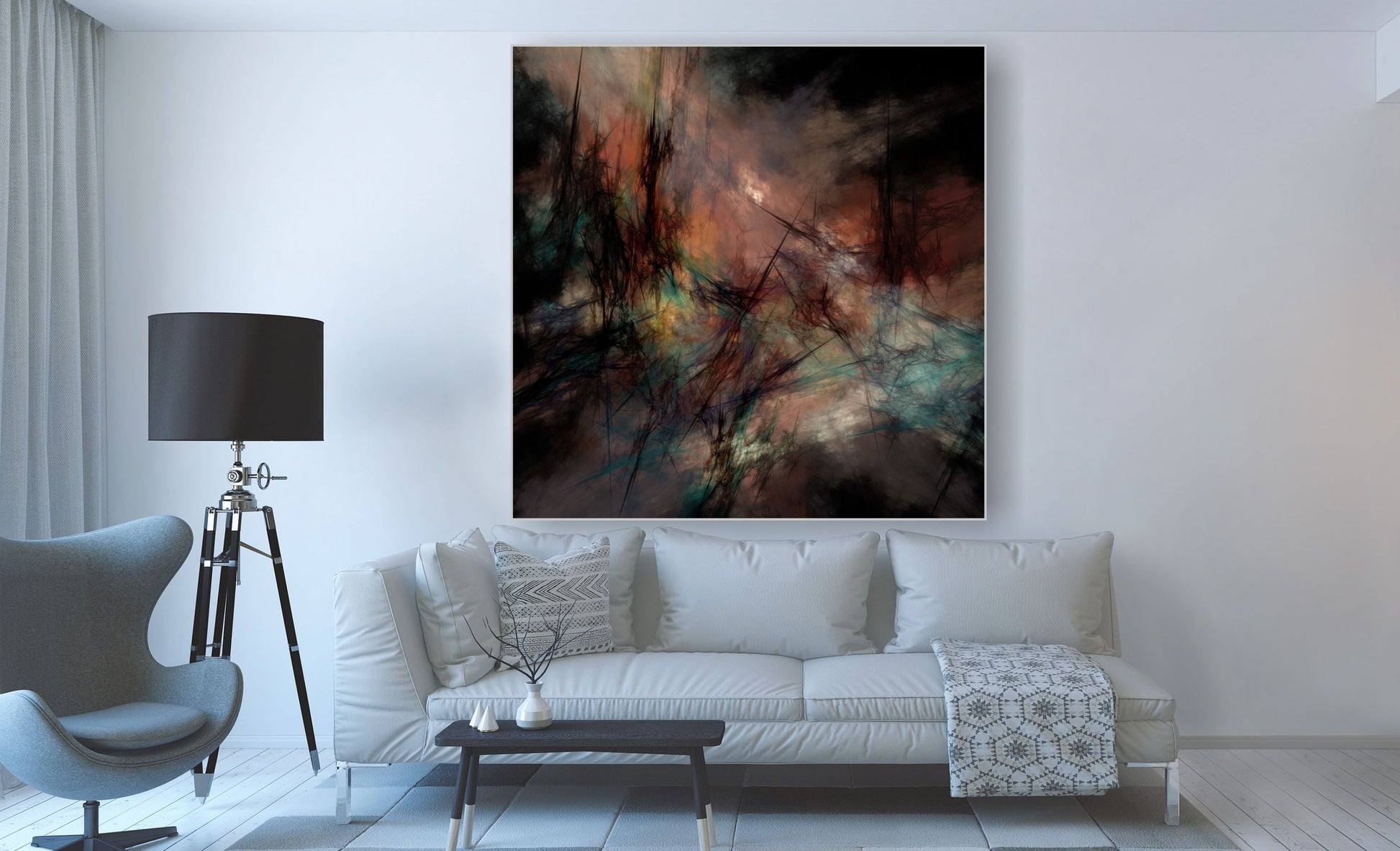 WANDBILDER ALURAHMEN ABSTRAKTE BILDER WOHNZIMMER 150x150 BLACK BUNT