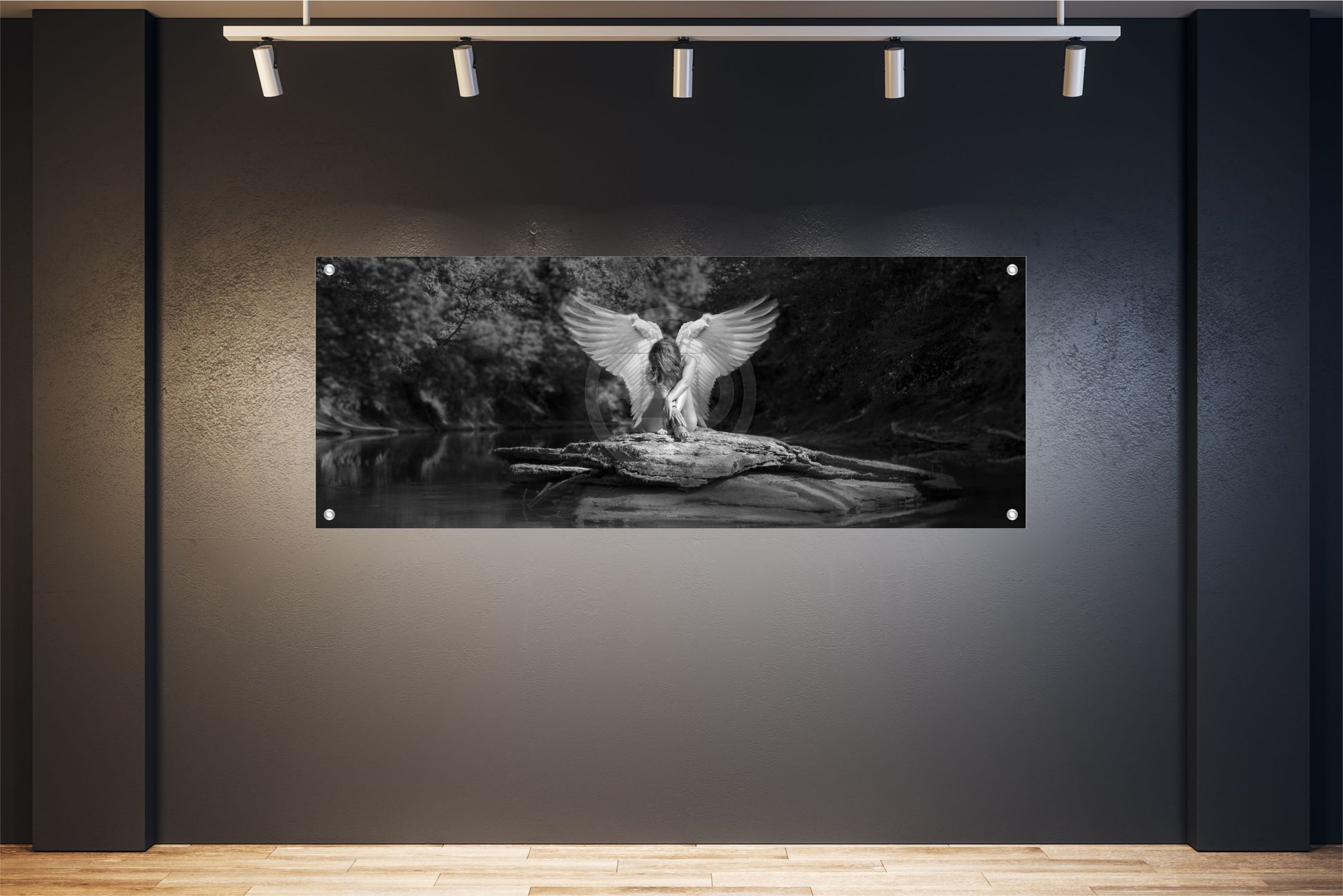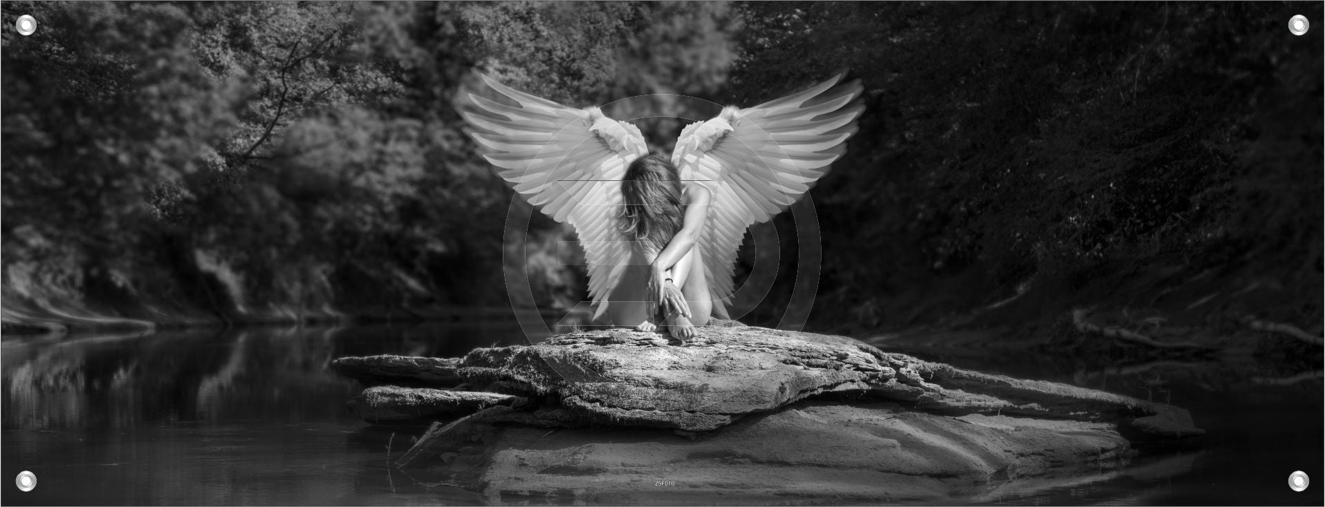 FANTASIE WANDBILDER POSTER DEKO BILDER XXL 160x60 FRAU ENGEL FELSEN S/W