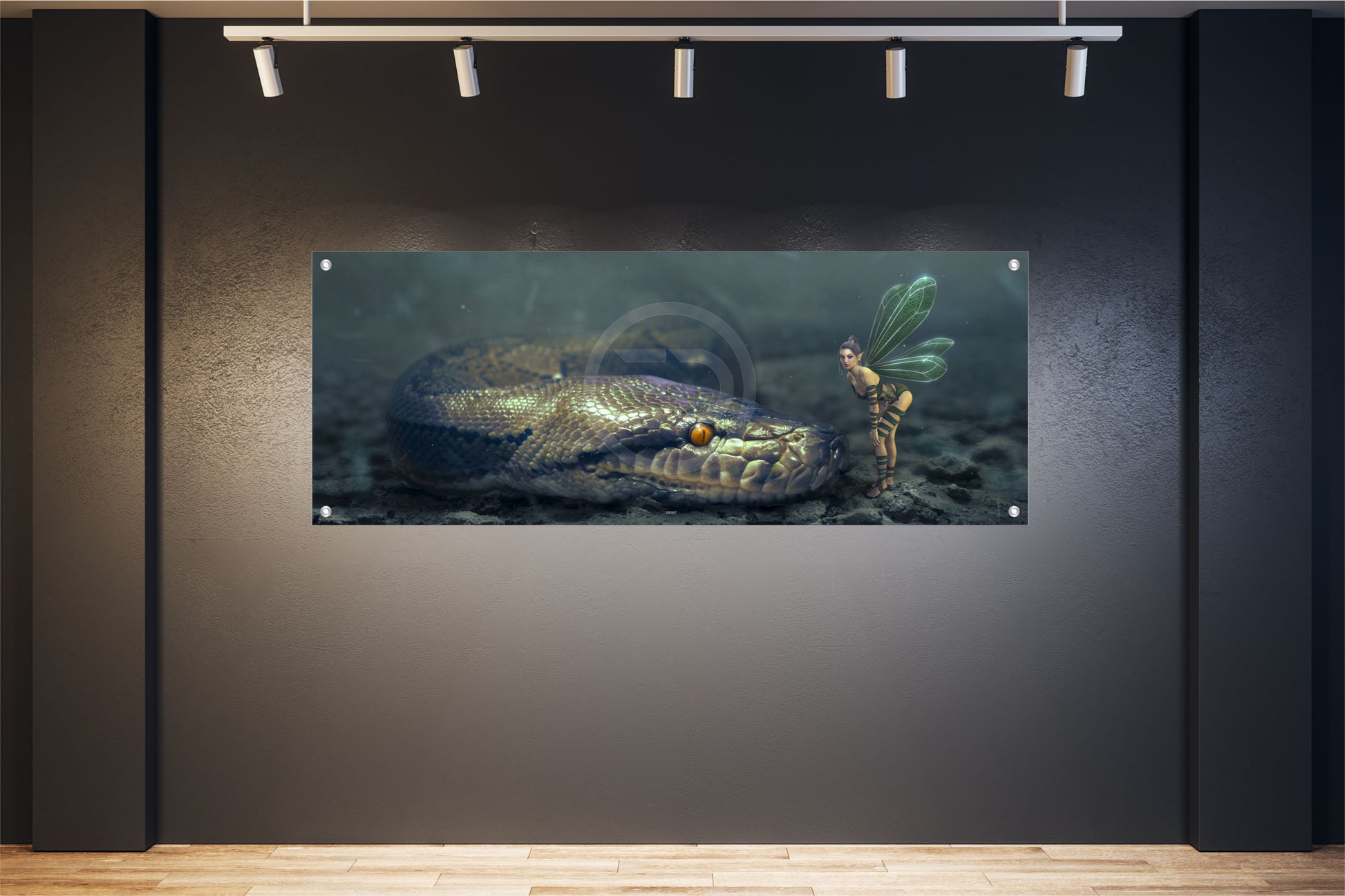 FANTASIE WANDBILDER POSTER DEKO BILDER XXL 160x60 SCHLANGE ELFE SKULL