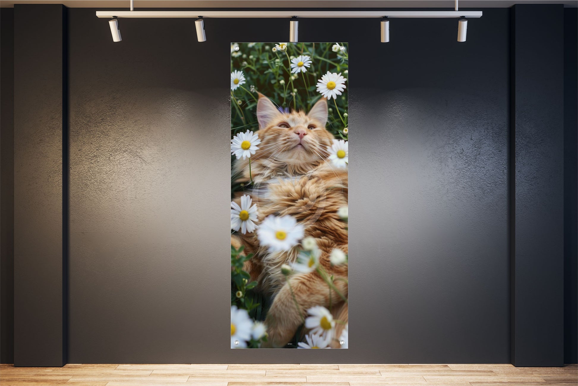 TIER WANDBILDER POSTER DEKO BILDER XXL 60x160 KATZE WIESE NATUR BLUMEN
