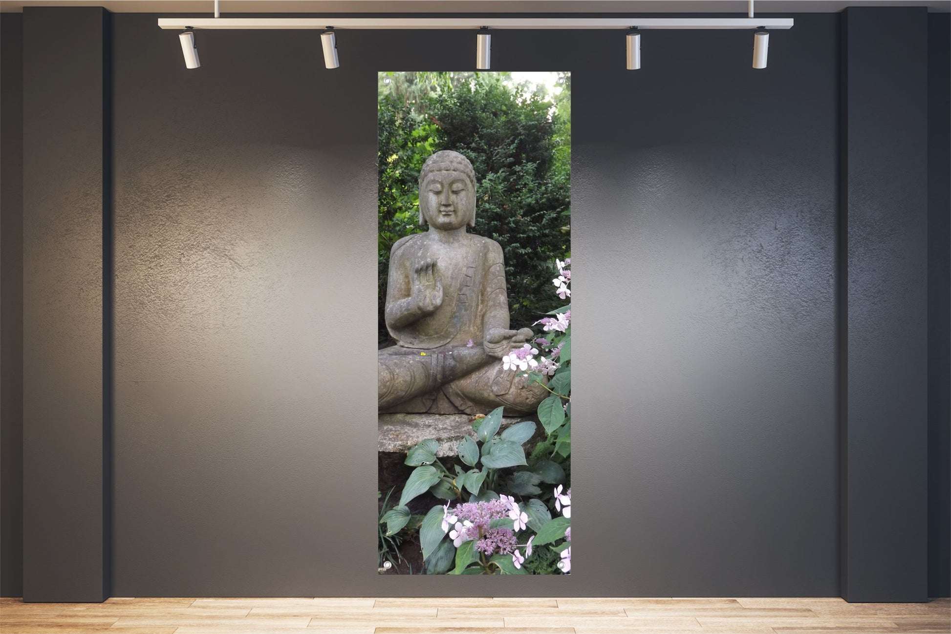 Verleihen Sie Ihrem Zuhause einen einzigartigen Charme mit unserem hochwertigen Buddha Wandbilder/Poster in der Größe 60 x 160 cm. Dieses vielseitige Kunstwerk eignet sich perfekt für die Innen- oder Außendekoration und bietet eine stilvolle Möglichkeit, Ihre Wände oder Garten zu verschönern oder Ihre Schaufenster ansprechend zu gestalten.