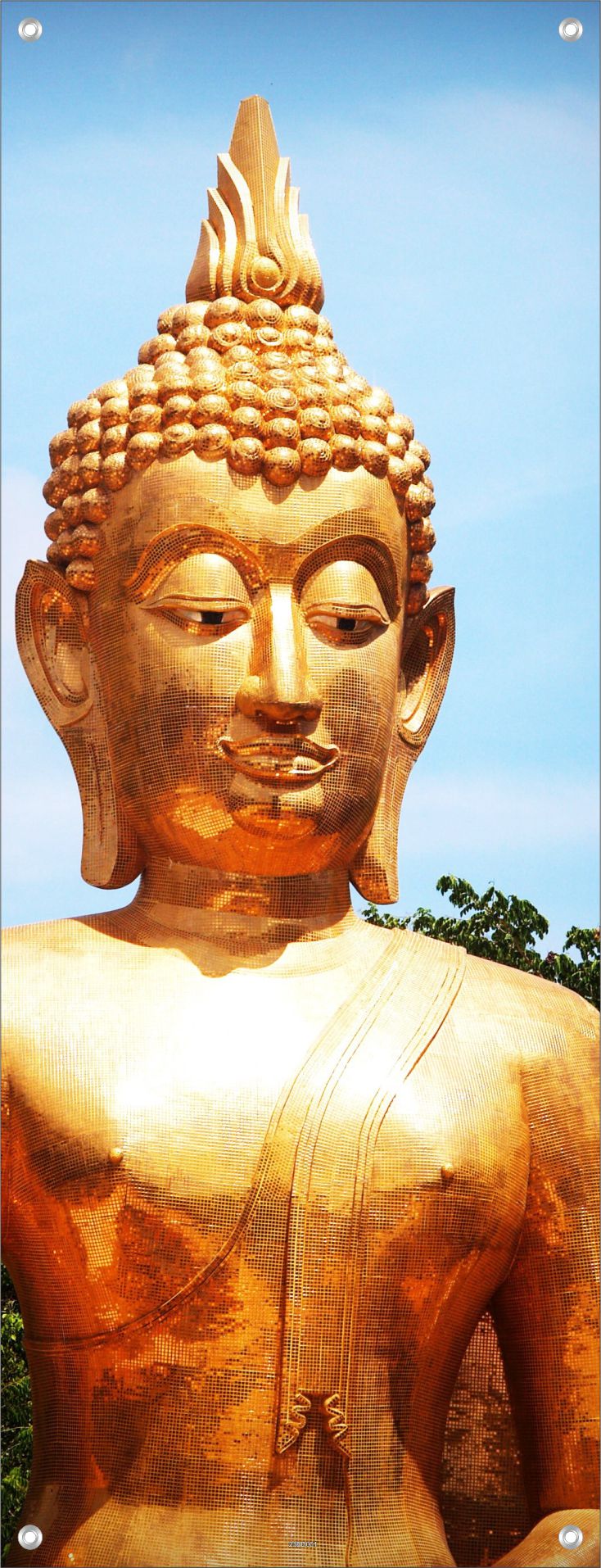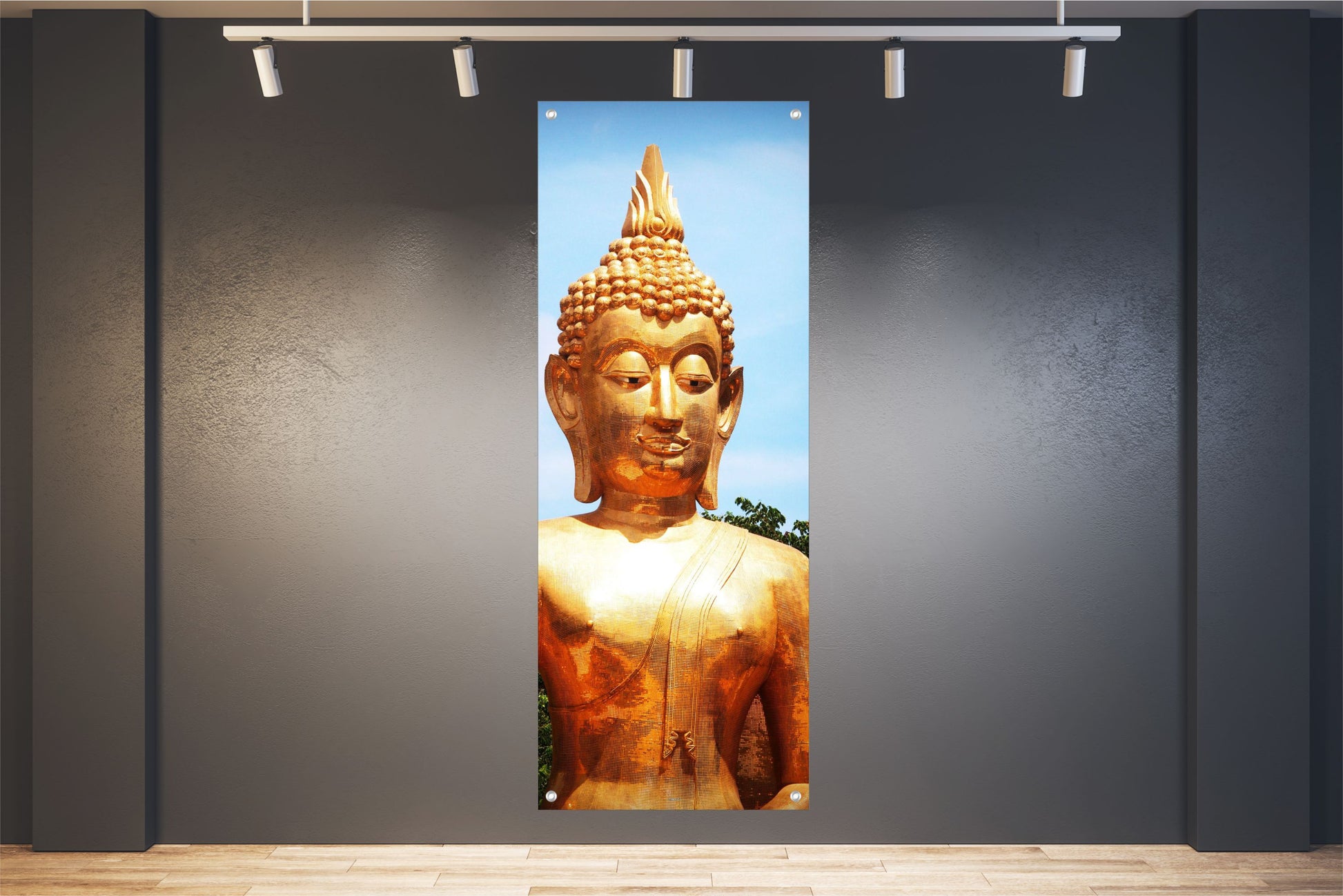 Verleihen Sie Ihrem Zuhause einen einzigartigen Charme mit unserem hochwertigen Buddha Wandbilder/Poster in der Größe 60 x 160 cm. Dieses vielseitige Kunstwerk eignet sich perfekt für die Innen- oder Außendekoration und bietet eine stilvolle Möglichkeit, Ihre Wände oder Garten zu verschönern oder Ihre Schaufenster ansprechend zu gestalten.