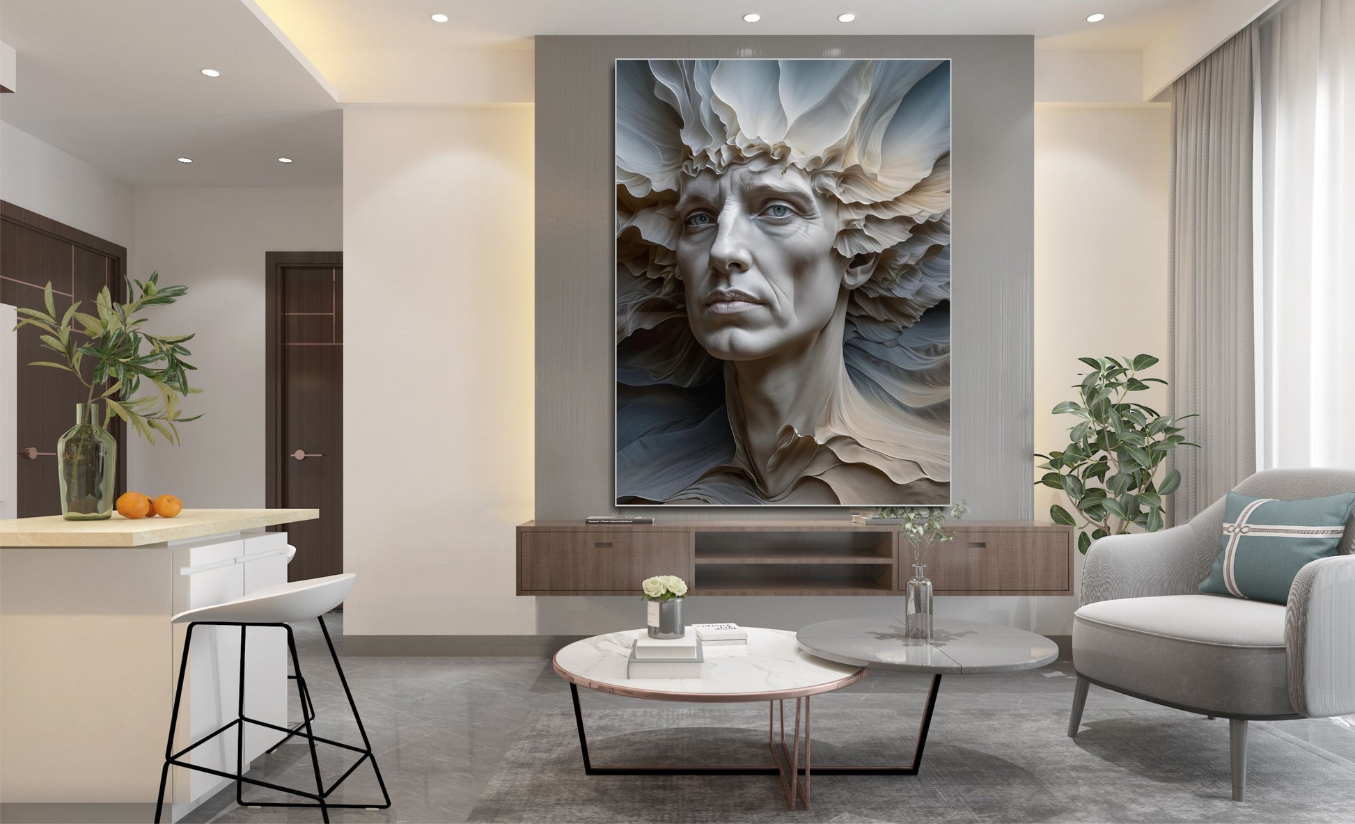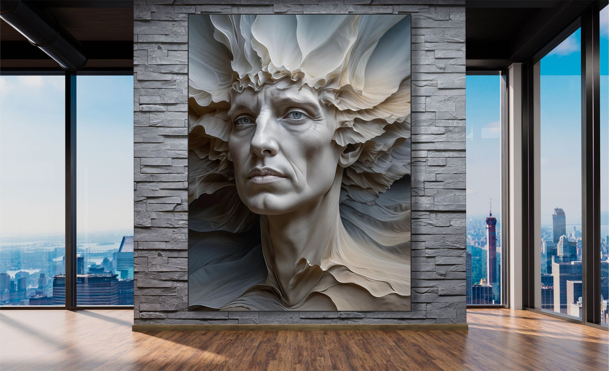WANDBILDER ALURAHMEN 150x200 ABSTRAKTE BILDER WOHNZIMMER XXL GESICHT KUNST 3D