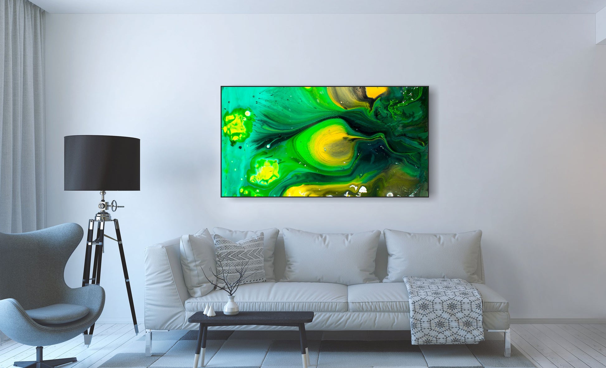 WANDBILDER XXL ALURAHMEN ABSTRAKTE BILDER WOHNZIMMER 80x150 KUNST LIQUID GRÜN